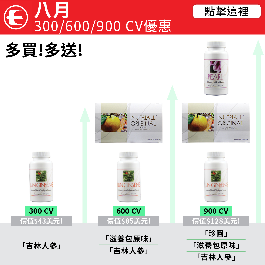 - 8月31日 (星期一): 最後一天訂購儅月促銷產品和做產品轉點。